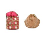 Combo – Designer Embroidered Potli Bag – Red & Beige