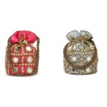 Combo – Designer Embroidered Potli Bag – Golden & Pink