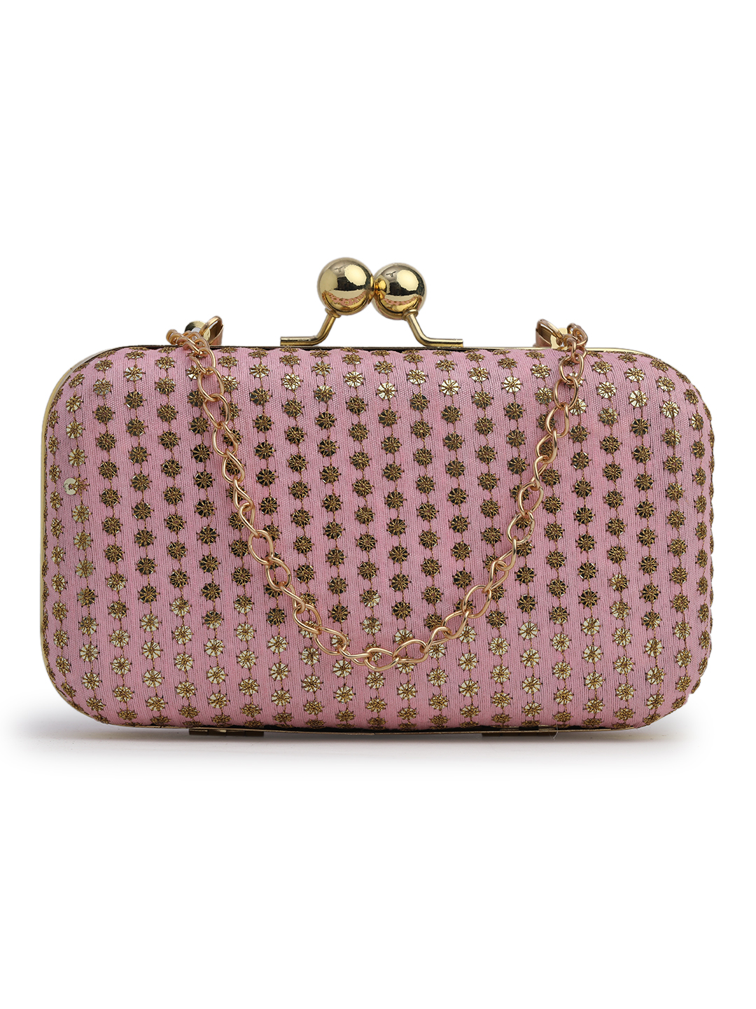 Pink & Gold Embroidered Box clutches, Has gold chain shoulder strap, 1 main compartment with Kiss closure